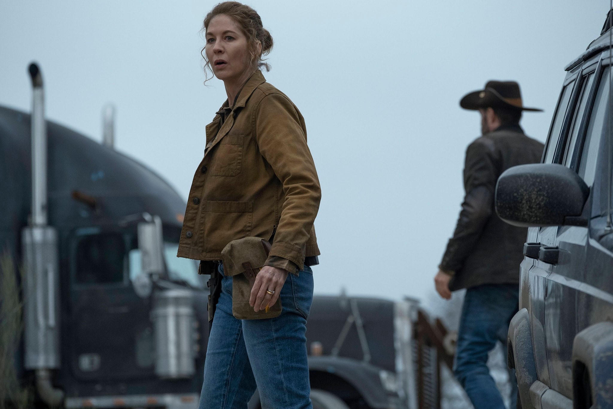 Джун говорит Джону, что не хочет уходить. У нее будет больница. И есть группа, которая нацелилась на поселение. Тогда на развилке Джон сам сворачивает с дороги и уезжает без жены.